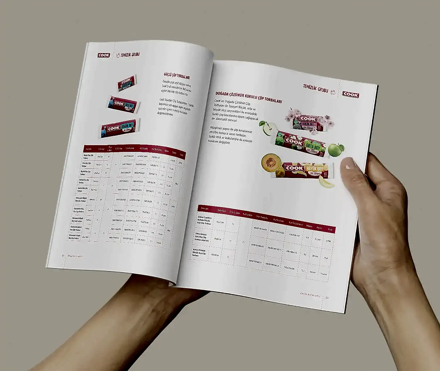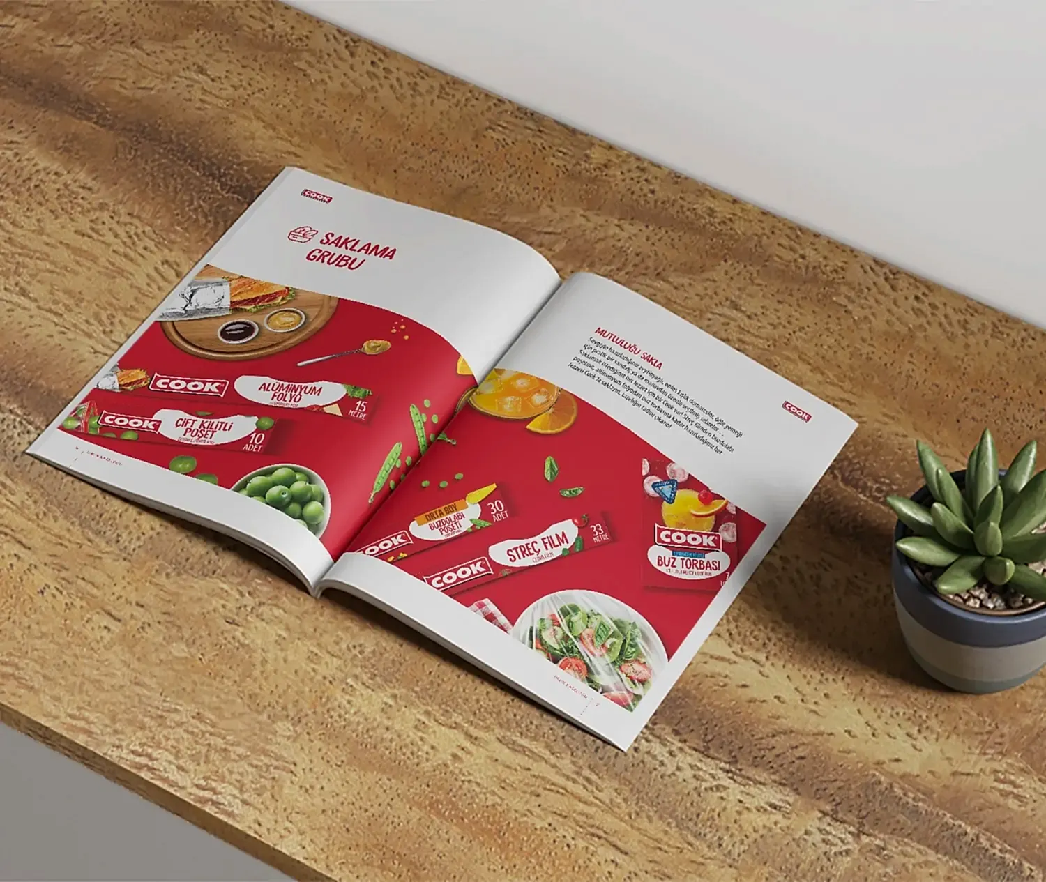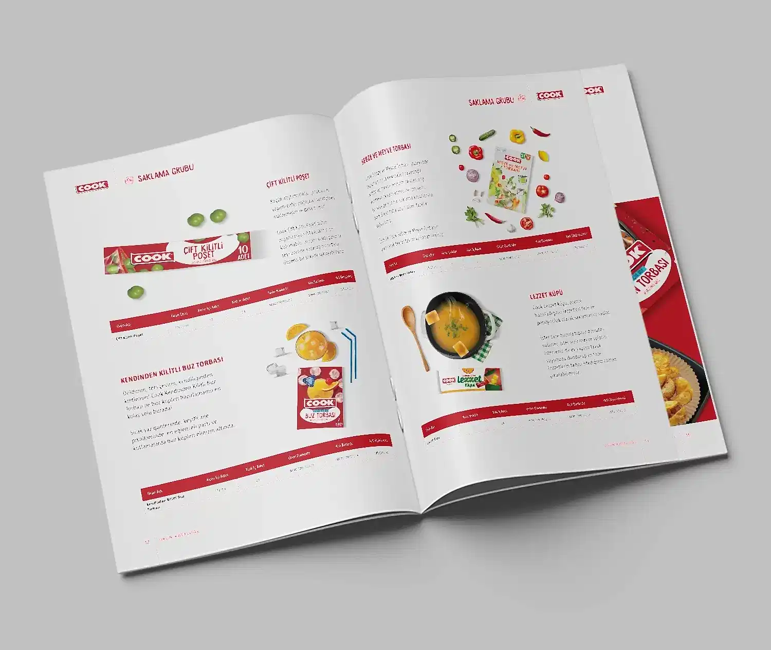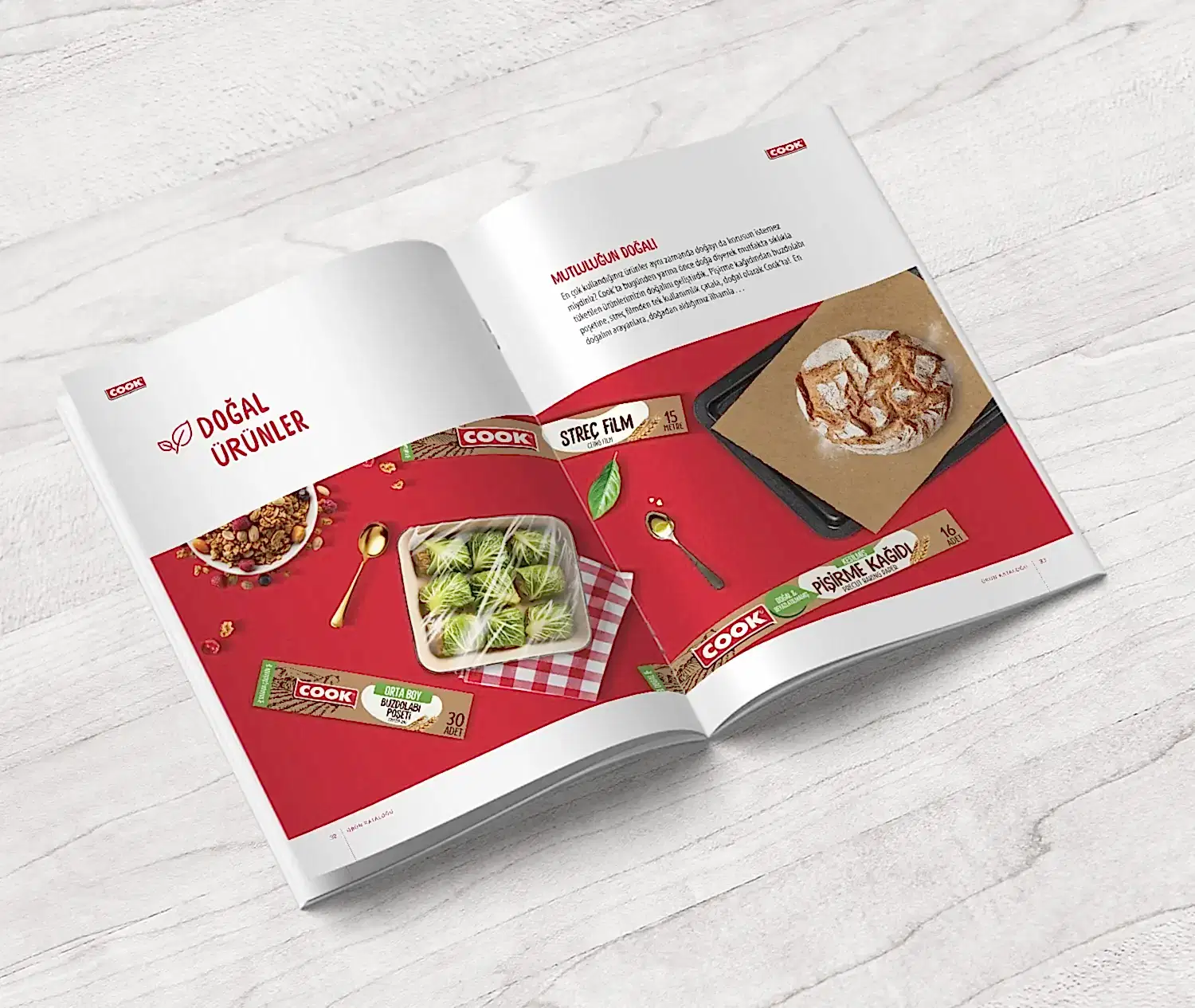 Cook için hazırladığımız katalogta, markanın mutfakta sunduğu pratik ve çözüm odaklı yaklaşımı tasarımın merkezine aldık.